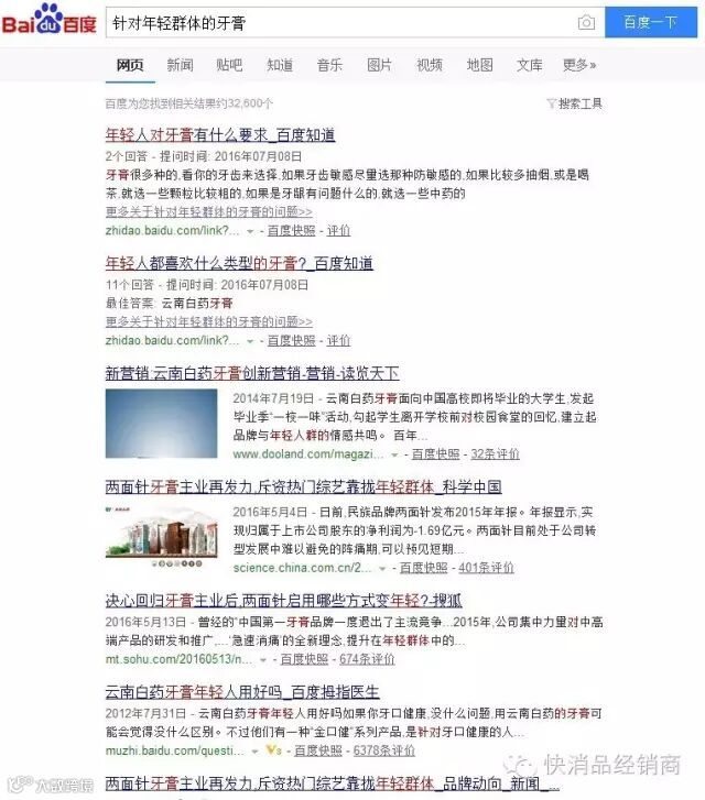 笔者百度搜索针对年轻群体的牙膏,竟然少之又少,整个百度没一篇文字介绍。