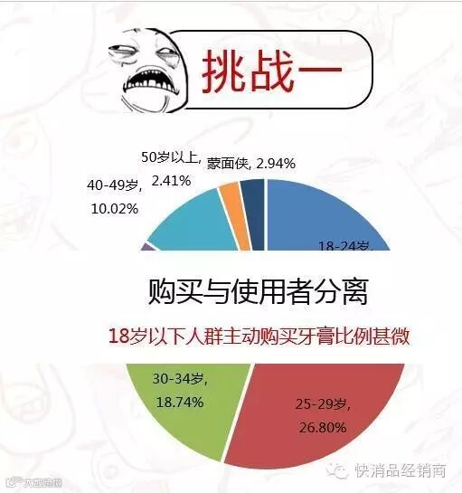 18岁以下主动购买牙膏的比例甚微,多是家长帮助购买。销售的挑战并不在年轻人,而在其父母。
