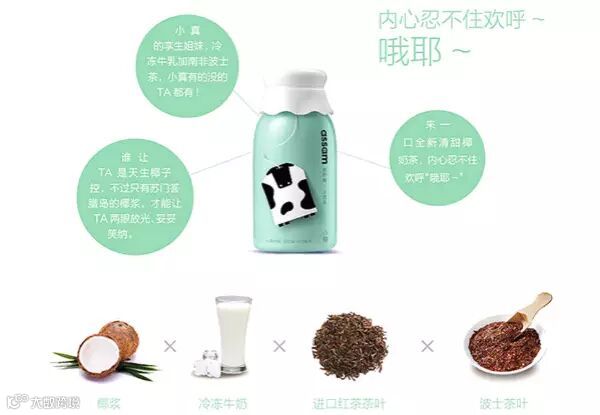 同样的,还有阿萨姆小奶茶,其“南非路易波士茶+澳洲冷冻牛乳+印尼椰浆”的卖点,也是走原料进口的高端路线。