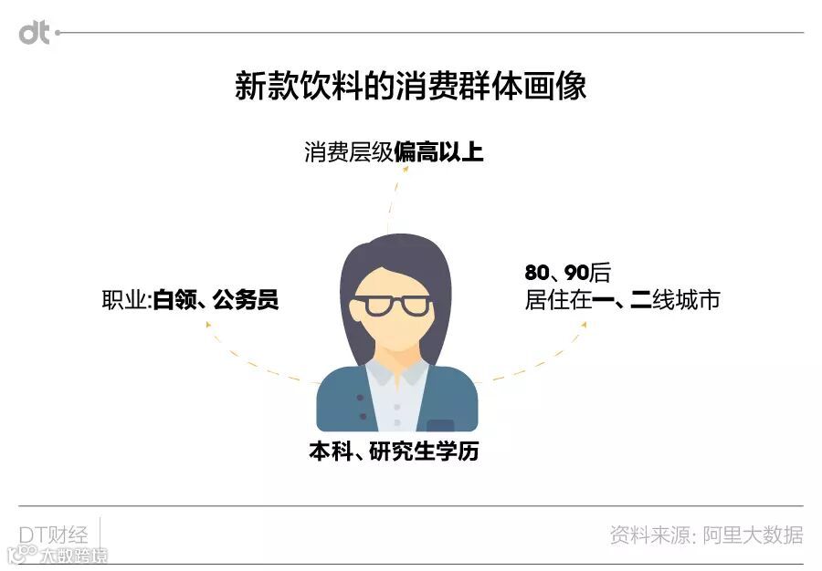 根据阿里大数据,对果蔬汁、椰子水、气泡水、即饮咖啡等饮料品类有网购兴趣的典型用户,长这样(你没跑吧):