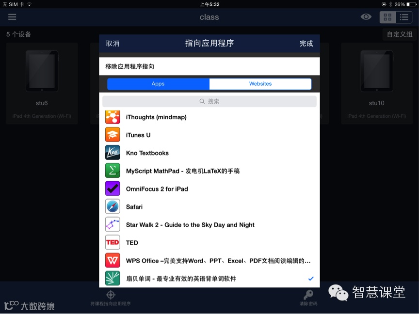 在课堂教学中,教师可以启用单一应用模式,控制学生的应用及解锁。