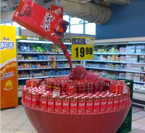 在货架陈列之外,单品在商超和常规渠道门店的架端与地堆,更集中、更突出地展示商品的效果最好。