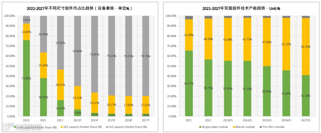大尺寸组件主流地位确立,N型技术导入带动双玻占比提升。