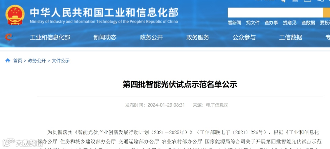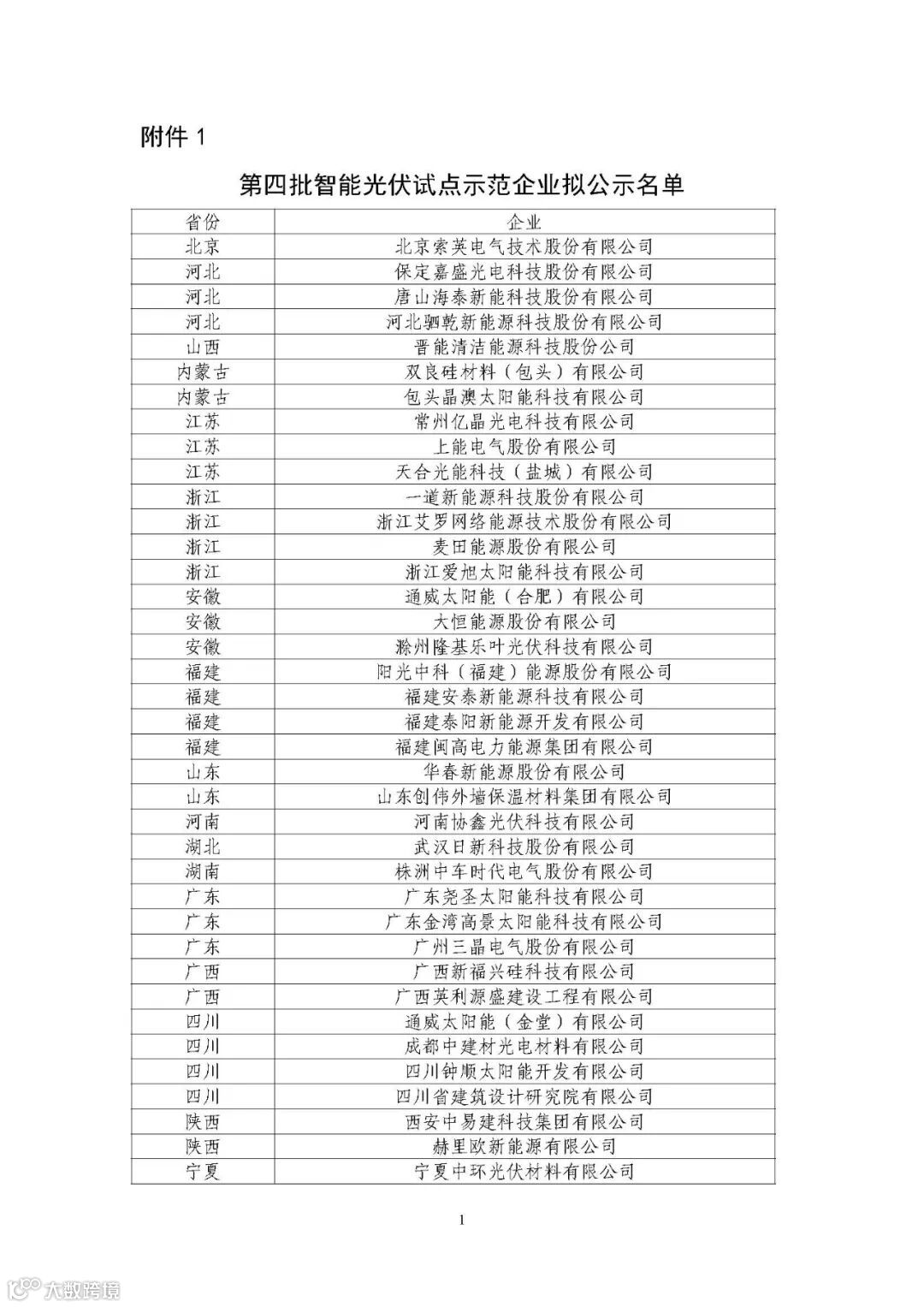 1月29日,工信部公示了第四批智能光伏试点示范企业和第四批智能光伏试点示范项目名单,内容如下:
