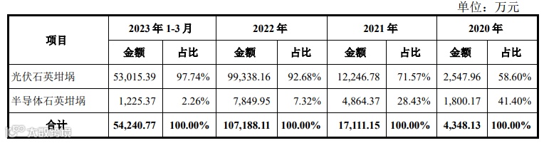 2.过往经营数据:2022年,欧晶科技石英坩埚产量为126878只,销量为121239只,平均价格为6234元/只;2023年1-3月,石英坩埚产量为32536,销量为36483只,平均价格为10690元/只。