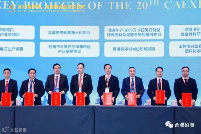 2023年9月16日至19日在南宁市举行。合浦县在东博会上再签石英材料新项目。合浦县分别与中国建筑(广西)总部、中硅工业集团、北京勘察技术工程签约的广西北海高纯硅基新材料项目,项目投资总额106.1亿元。总用地面积约600亩,主要产品为高纯石英砂、石英坩埚,高纯石英管,高纯石英锭,高端硅微粉,建成达产后年产值227.6亿元,年税收10.15亿元。