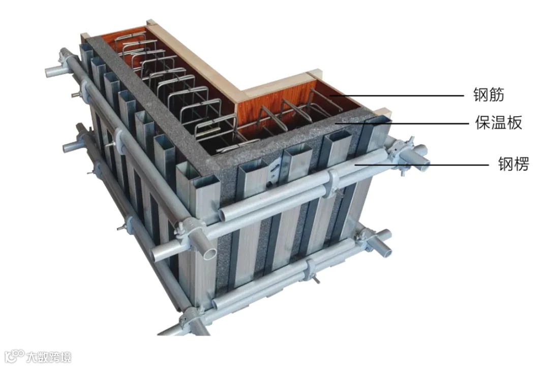 此系统是将保温板置于建筑外模板内侧,并安装连接件,混凝土现浇成型后与保温板结合成一体,外侧做轻质砂浆找平层、防水抹面层、饰面层形成的外墙外保温系统。