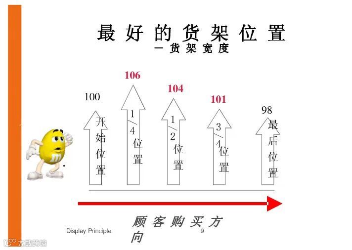 8、收款台的陈列:收款台是最后的销售机会。因而要选择合适的收款台,即顾客流量大的通道。