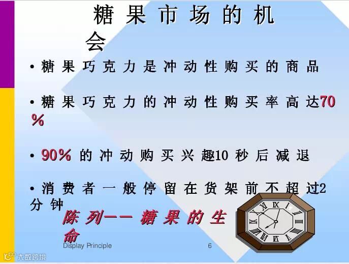 与显而易见的目的类似,陈列的高度应控制在店员或顾客能伸手可取的位置。尤其糖果的主要消费者还有儿童,应该注意这一点。