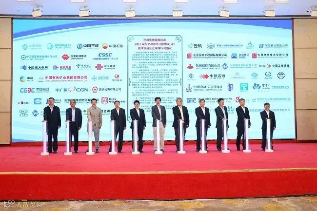中国招标投标协会会长任树本、中国移动通信集团有限公司供应链管理中心总经理李威、国家电网有限公司物资管理部主任卓洪树、中国国家铁路集团有限公司物资管理部副专员张振江、中国长江三峡集团有限公司采购与物资管理中心副主任李道祥、国家能源投资集团有限责任公司采购与物资管理部副主任王乐毕、中国广核集团有限公司招标中心副主任杨路、华能招标有限公司总经理白军坡、长春一汽国际招标有限公司总经理刘侠、中建电子商务有限责任公司总裁智建鹏、山东高速集团有限公司执行总监左志武共同为倡议启动仪式揭幕。