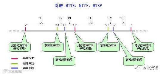 1. MTBF——全称是Mean Time Between Failure,即平均失效间隔。就是从新的产品在规定的工作环境条件下开始工作到出现第一个故障的时间的平均值。MTBF越长表示可靠性越高正确工作能力越强 。 2. MTTR——全称是Mean Time To Repair,即平均修复时间。就是从出现故障到恢复中间的这段时间。MTTR越短表示易恢复性越好。 3. MTTF——全称是Mean Time To Failure,即平均失效前时间。系统平均能够正常运行多长时间,才发生一次故障。系统的可靠性越高,平均无故障时间越长。 可靠性是最初是确定一个系统在一个特定的运行时间内有效运行的概率的一个标准。可靠性的衡量需要系统在某段时间内保持正常的运行。 目前,使用最为广泛的一个衡量可靠性的参数是,MTTF(mean time tofailure,平均失效前时间),定义为随机变量、出错时间等的"期望值"。但是,MTTF经常被错误地理解为,"能保证的最短的生命周期"。MTTF 的长短,通常与使用周期中的产品有关,其中不包括老化失效。 MTTR(Mean TimeTo Repair,平均修复时间),源自于IEC 61508中的平均维护时间(mean time to repair),目的是为了清楚界定术语中的时间的概念,MTTR是随机变量恢复时间得期望值。它包括确认失效发生所必需的时间,以及维护所需要的时间。MTTR也必须包含获得配件的时间,维修团队的响应时间,记录所有任务的时间,还有将设备重新投入使用的时间。 MTBF(Mean timebetween failures,平均故障间隔时间)定义为,失效或维护中所需要的平均时间,包括故障时间以及检测和维护设备的时间。对于一个简单的可维护的元件,MTBF = MTTF + MTTR。因为MTTR通常远小于MTTF,所以MTBF近似等于MTTF,通常由MTTF替代。MTBF用于可维护性和不可维护的系统。
