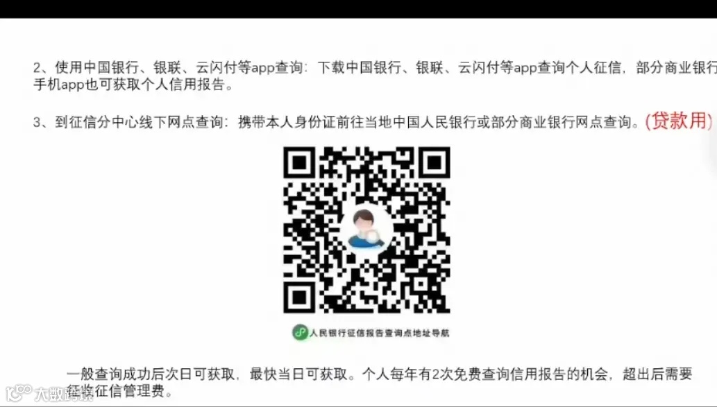 ◎自助查询机:人民银行分支机构查询点、部分商业银行服务网点提供自助查询机查询。