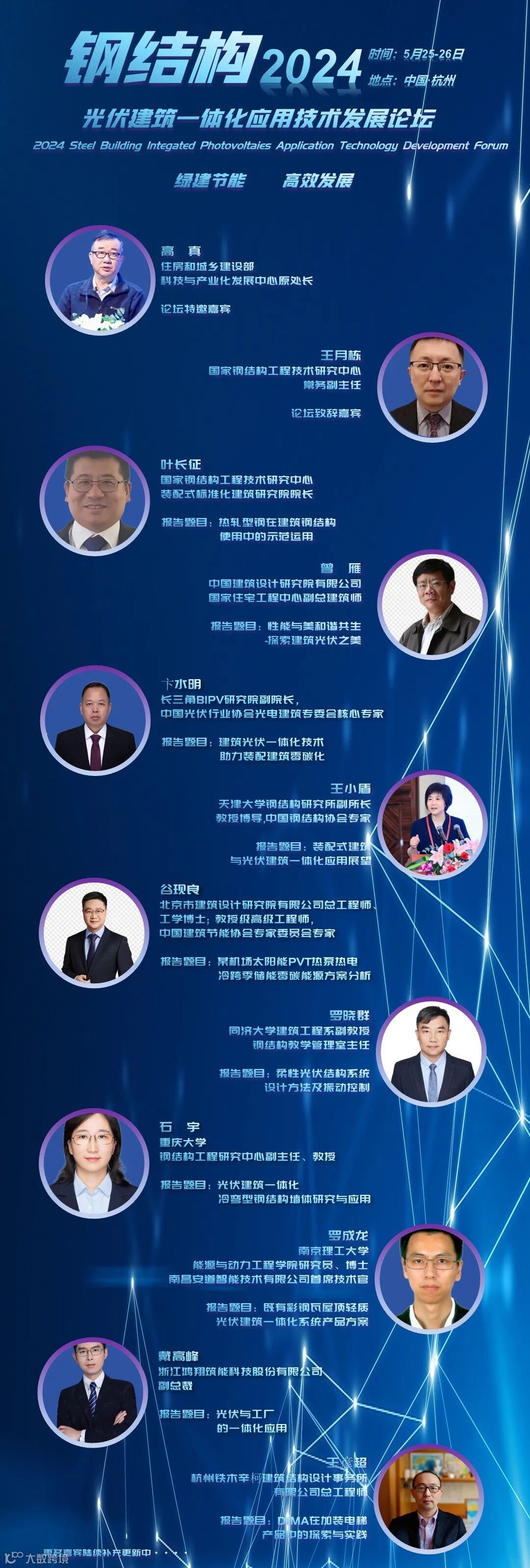 中国国际工程咨询协会设备物资采购分会、浙江省钢结构行业协会、北京津西绿建科技产业集团有限公司、长三角BIPV研究院、全国房地产商会联盟北京工作委员会、中建科工、鸿路钢构、杭萧钢构、中南钢构、东南网架、中天恒筑钢构、中建海峡、森特股份、江河集团、龙元建设、鸿路钢构、隆基新能源、雅博科技、晶科能源、东方日升、合特光电、浙江鸿翔筑能科技公司、南昌安道智能技术有限公司、山东泰特斯新材料有限公司、浙江高明新材料科技有限公司、杭州铁木辛柯建筑结构设计事务所等