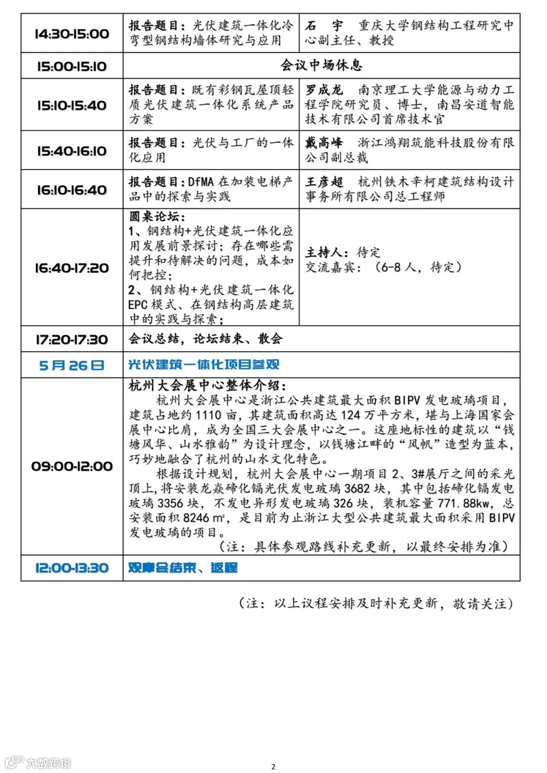 项目观摩:2024年5月26日(周日上午:09:00-12:00)(参观:杭州光伏建筑一体化项目)