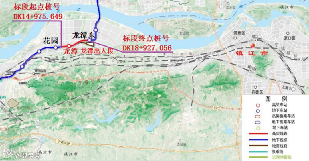 南京至仪征线(含扬州延伸线)一期工程全长约53.75公里(不含过江段),其中D.S05.X-TA06标为一站两区间一出入线,包括花园站-龙潭站(高架)、龙潭站(高架)、龙潭站-龙潭东站(高架)、龙潭车辆段出入段线(高架),区间全长3811米,车站面积0.67万平方米,出入段线全长556.9米。