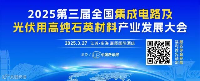 在此背景下,中国粉体网拟于2025年3月27日在江苏东海县嘉臣国际大酒店举办“2025第三届全国集成电路及光伏用高纯石英材料产业发展大会”,大会诚邀国内石英业界专家学者、企业代表、技术人员积极参会,共同探讨高纯石英材料的制备技术及产业前沿,推动产业高质量健康发展。