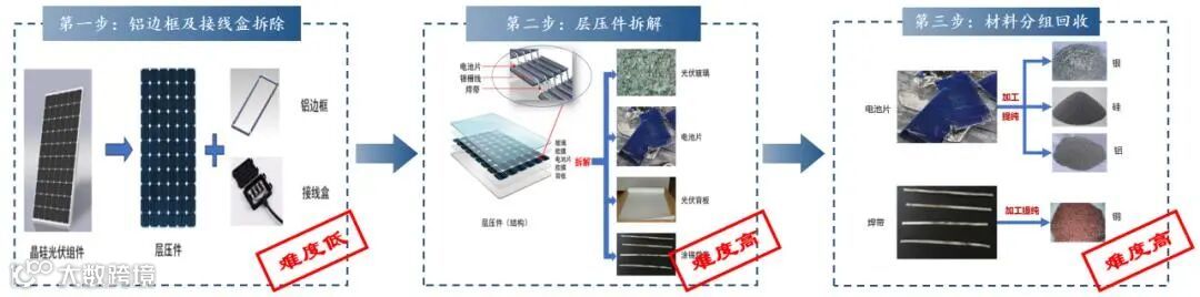 其次,是拆解工艺的问题。当前,光伏回收的产业化拆解和处置技术尚未完全成熟,如何实现真正高效的拆解和材料加工,使得提纯后的金属和非金属材料能更好地满足市场需求,这是光伏回收行业面临的第二个技术挑战。