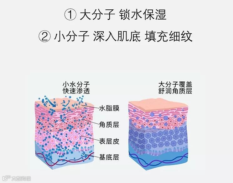 透明质酸钠:就是我们讲的玻尿酸,这个就不用太多介绍了,但我们要讲的是:玻尿酸有大小分子之分,大小分子玻尿酸在护肤功效上有所不同。通俗点讲就是:大分子在表层锁水保湿,小分子深入肌底,填充细纹。