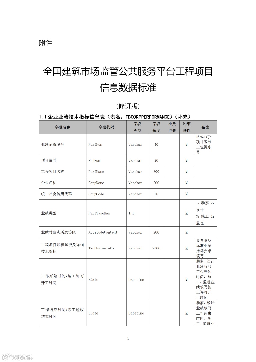 附件:全国建筑市场监管公共服务平台工程项目信息数据标准(修订版)