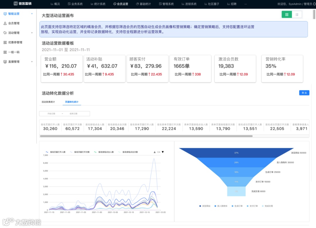 通过分析所有活动页面的打开人数、打开次数和转化数据,华观数智利用可视化方式提供活动数据分析图表。通过整个链路的数据分析,找到关键流失节点,为流程优化和决策提供有效依据。