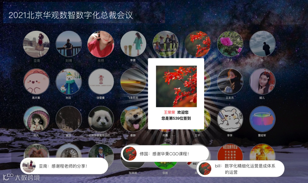扫码签到后,线下大屏直接可上墙!并可手机端发送互动弹幕,瞬间引爆现场活动氛围。