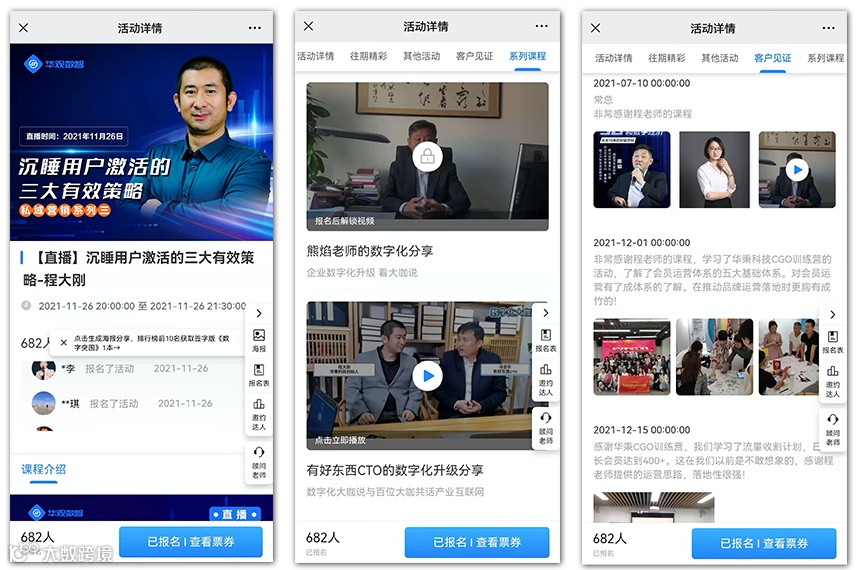 除此之外,线上直播课程或线下讲座时候,还可以配置系列短视频课程,辅助做客户报名转化。
