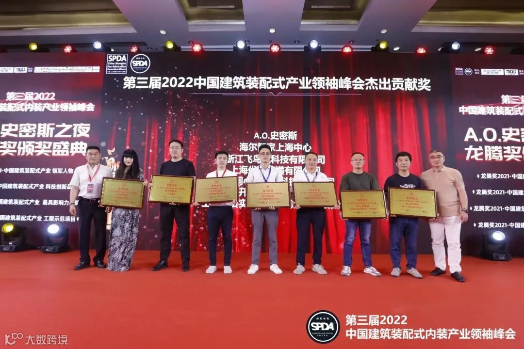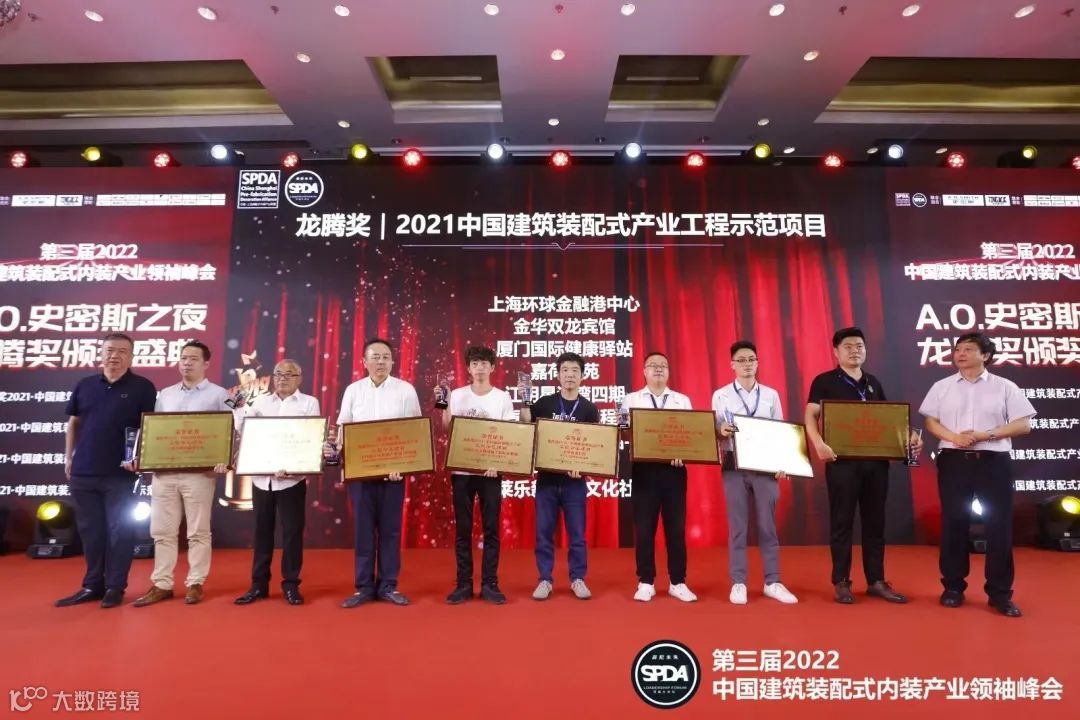 晚上,“A.O.史密斯之夜•龙腾奖颁奖盛典”以“龙腾奖”荣誉奖项表彰在2021年度为装配式建筑产业作出特殊贡献的领军人物、科技创新品牌、最具影响力品牌以及示范工程项目。以此鼓励为装配式产业所作出杰出贡献的个人与集体,促进新型建筑工业化产业的有序发展,提升产业形象力,树立行业标杆力量。
