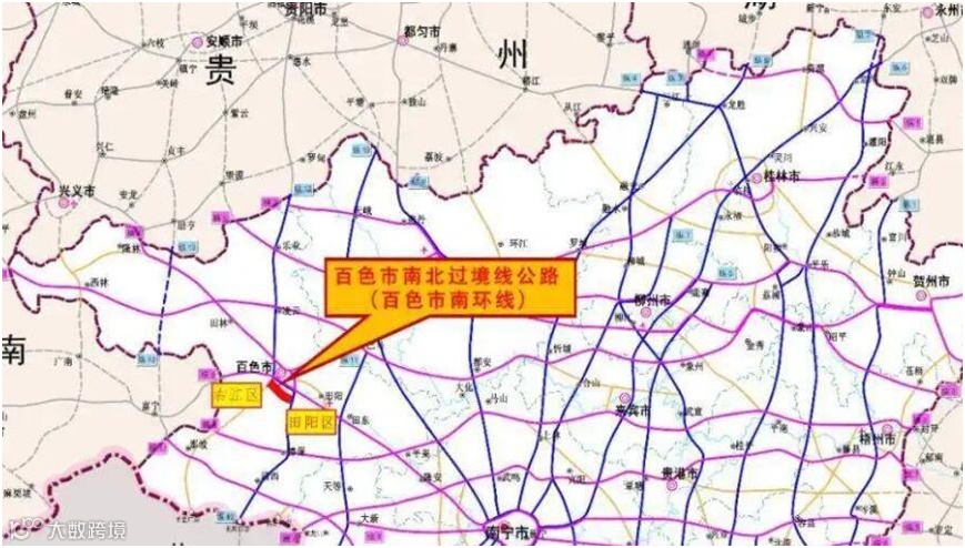 该项目位于广西壮族自治区百色市右江区、田阳区境内,是《广西高速公路网规划(2018-2030 年)》中的百色市城市过境线组成部分。主线:百色市南北过境线公路(百色市南环线)路线起于田阳区那坡镇百峰村西侧附近,设那音枢纽互通与百色至靖西高速公路相连,走向自东南向西北方向,经田阳区那坡镇、右江区,终于百色市右江区上宋村附近的上宋枢纽互通,连接已建成通车的广州至昆明高速公路(百色至罗村口段)和乐业至百色高速公路。