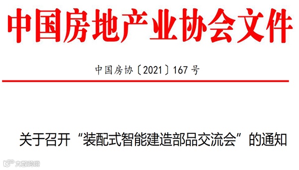 为落实住房城乡建设部《关于推动智能建造与建筑工业化协同发展的指导意见》、《关于推动城乡建设绿色发展的意见》等文件精神,推动钢结构装配式住宅建设,提升构件标准化,形成完整产业链,推进智能建造和建筑工业化协同发展,中国房地产业协会定于2021年12月23日,在山东济南举办“装配式智能建造部品交流会”。现将有关事项通知如下: