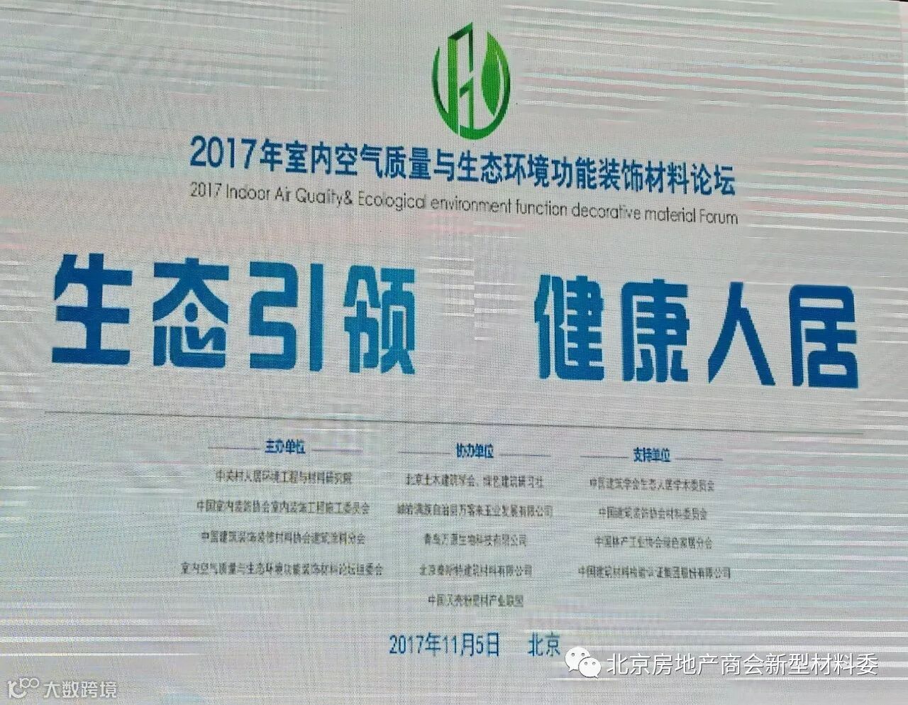 为了贯彻十九大会议精神,改善人居环境,提高生活幸福指数,中关村人居环境工程与材料研究院、中国室内装饰协会室内装饰工程施工委员会、中关村绿色建筑创新技术联盟、北京住宅房地产业商会材料委员会联合支持主办的第二届“室内空气质量与生态环境功能材料发展论坛于2017年11月5日在北京隆重举行。论坛的召开得到中国建筑学会生态人居学术委员会、中国建筑学会工业化建筑委员会、中国建筑学会主动式建筑委员会、中国林产工业协会绿色家居分会、中国建筑装饰协会材料委员会、中国建筑材料装饰装修协会建筑涂料分会、中国建筑材料联合会生态建材分会、中国建筑节能协会屋顶与绿化节能专委会、中国电子商务协会装饰建材分会、中国工业设计协会建材专委会、中国建筑材料科学研究总院、中国建筑材料检验认证中心、中国贝壳粉壁材产业联盟、中国绿色建材产业联盟等行业协会的支持。