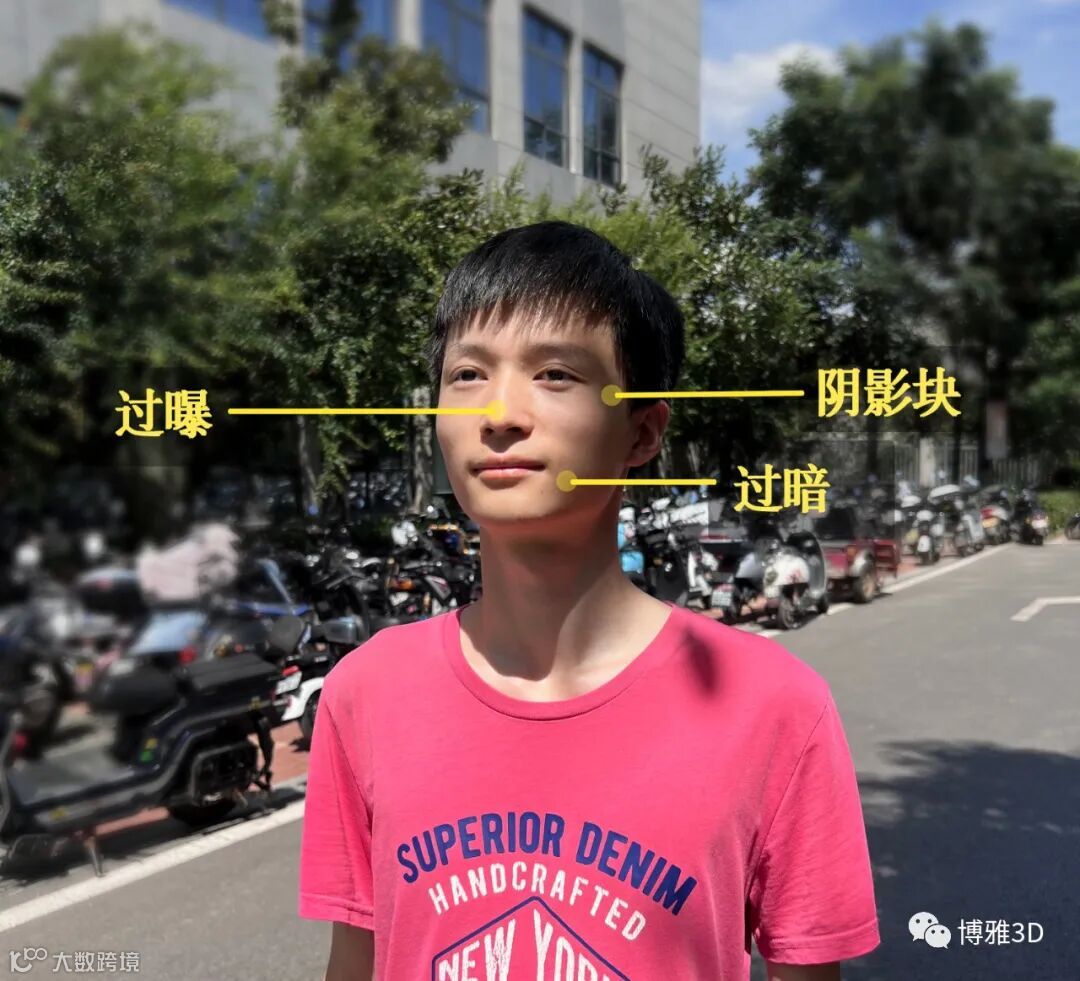 第二,确认模特所在区域的光线稳定,模特的背后没有发光/高反光物体。