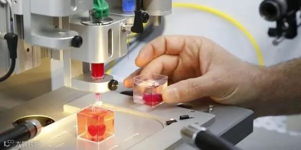 此外,3D打印还能打印出细胞,这已经不是新鲜事了,细胞打印技术的概念是Boland等在2003年提出的,该技术突破了传统组织工程技术空间分辨率低的局限性,可精确控制细胞的分布。在“细胞打印”过程中,细胞(或细胞聚集体)与溶胶(水凝胶的前驱体)同时置于打印机的喷头中,由计算机控制含细胞液滴的沉积位置,在指定的位置逐点打印,在打印完一层的基础上继续打印另一层,层层叠加形成三维多细胞/凝胶体系。