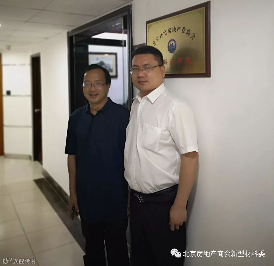 商会副秘书长兼材料委主任崔东义与全国房地产联盟副秘书长、上海房地产商会秘书长、商会上海办事处主任王卫(左一)合影。在交流沟通时王卫主任说利用上海最大的招标公司上海机电招标公司深层次为商会会员企业服务!