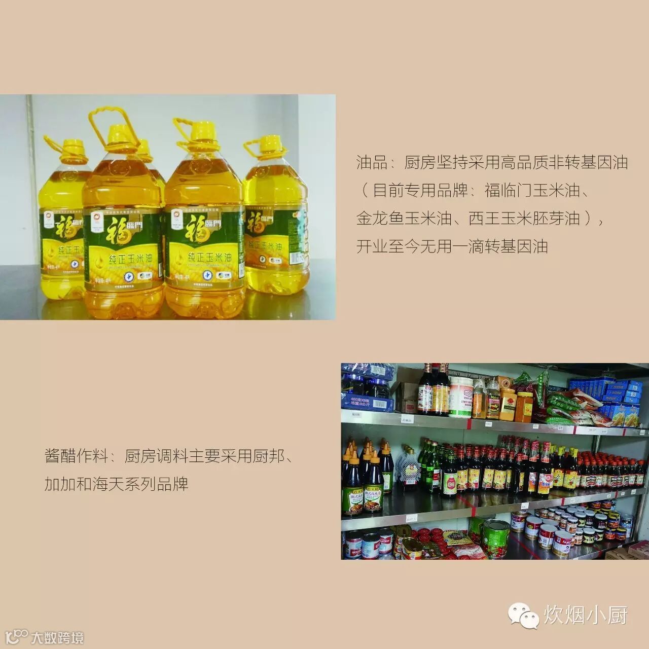 油品:厨房坚持采用高品质非转基因油(目前主要选用品牌为:福临门玉米油、金龙鱼玉米油)