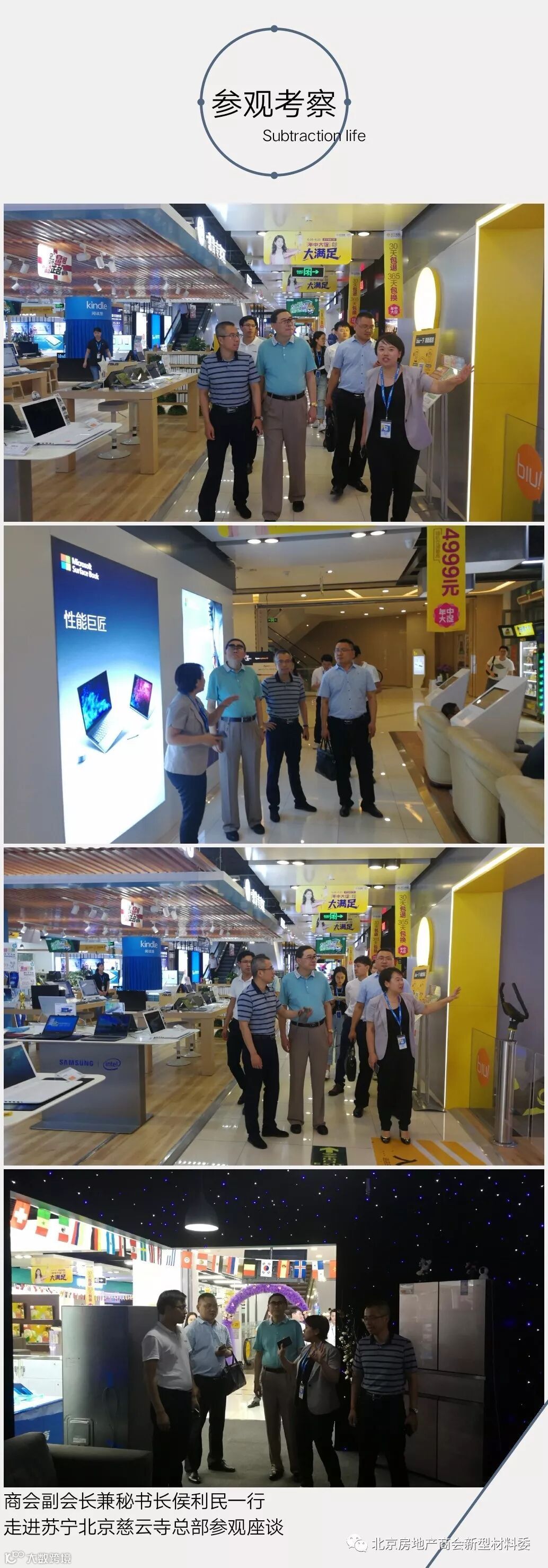 2018年6月6日下午,常务副会长兼秘书长侯利民、副秘书长兼材料委主任崔东义、副秘书长兼经济合作部部长侯威振、会员部部长兼材料委副主任程延、材料委副主任赵海东一行走进苏宁北京慈云寺总部参观考察并进行深刻的座谈交流!受到北京苏宁易购集团股份有限公司党委书记、副总经理高崑、公共事务总监杨彦都、市场总监陈晨、B2B总监王恩伟的亲切接待,在店长商红玉带领下参观了慈云寺店的业态。