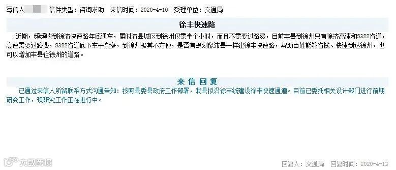 “徐丰快速路”的来信