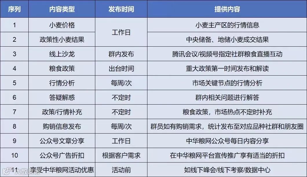 作为中华粮网新媒体团队打造的高价值付费社群,可实时推送粮食市场动态、政策解读及行情信息,提供线上线下高净值资源对接,更有专家团队实时答疑解实操难题,助力链接行业精英、拓人脉、促合作。粮食市场广阔但圈层集中,信任与价值需