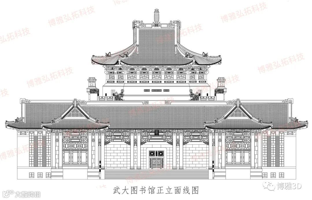 在本项目中,公司克服色彩纹理单一的台基、平铺式纹理的屋顶等难点位置,将包括廊柱、小塔等细节完好地重建于三维空间,实现老图书馆的数字资产化;绘制的矢量线描图得到建筑领域专家高度赞扬,成为后续学者参考学习的重要素材。