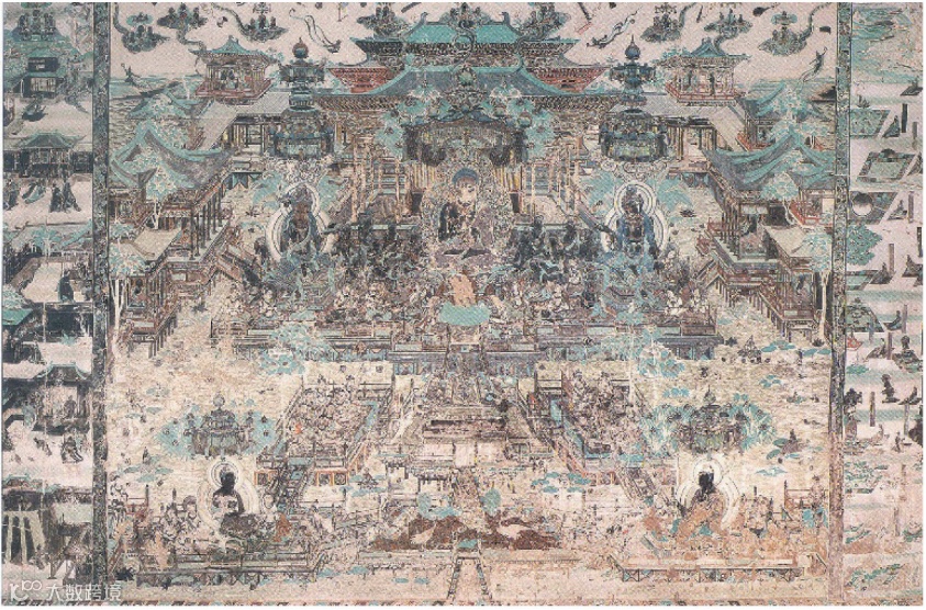 我们在中国唐代(8世纪)壁画中也发现了透视法的使用——见图11。有趣的是,在这幅画中同时使用了几个视角,其中原因不得而知。