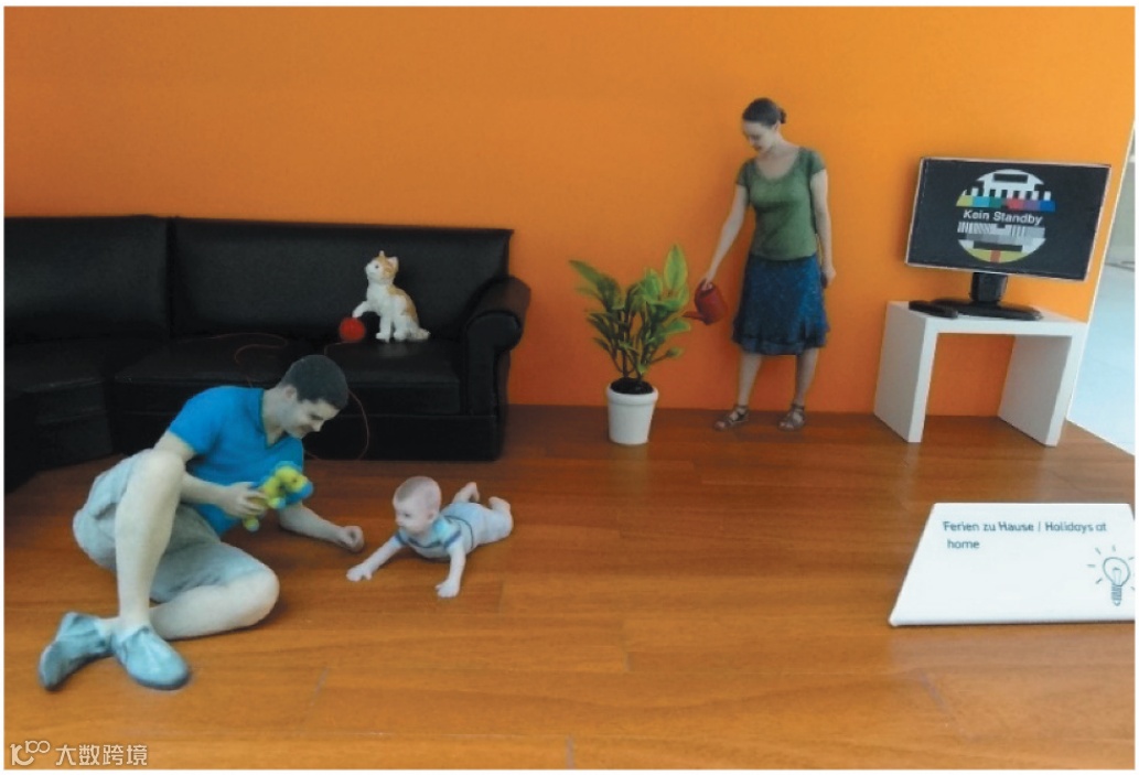 也有一些应用“Shotbox”的系统,在半球上分布64个摄像头,自动生成人、动物和物体的三维模型,将这些数据被输入3D打印机就可以生成硬拷贝模型。图12展示了一处由摄影测量扫描、建模和3D打印创建的场景。