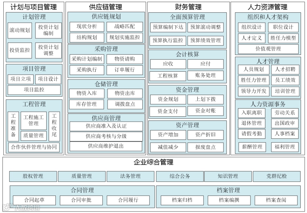 这种方式类似矩阵构图,既要体现价值链,又要体现横向的执行-管理-决策的分层。还有一种方式就是弱化横向分层的业务能力架构图,参考如下: