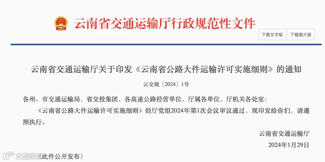 前不久,云南省交通运输厅印发《云南省公路大件运输许可实施细则》,2024年4月1日起施行。