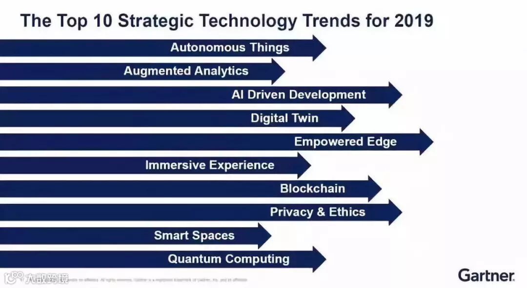 Gartner对战略性技术趋势的定义是:具有巨大颠覆性潜力的趋势,开始从新兴状态蜕变为更广泛的影响和使用,或者是快速发展的趋势,很大的波动性有望在未来五年达到临界点。