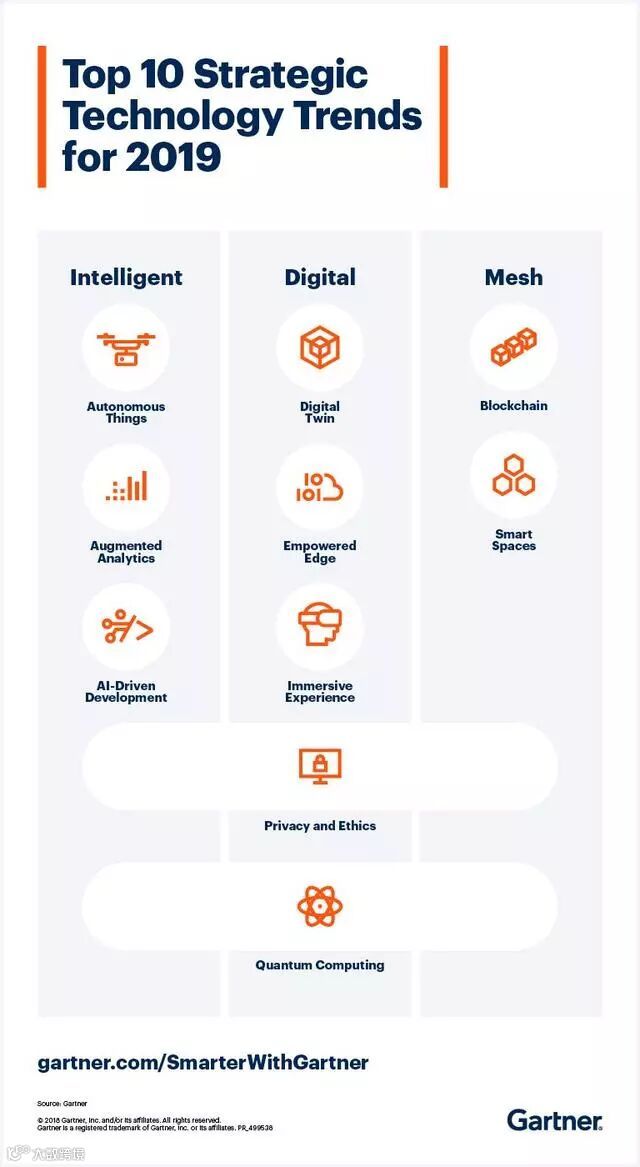 Gartner公司列出了企业组织在2019年需要探究的几大战略性技术趋势。分析师在Gartner研讨会/ ITxpo大会期间介绍了他们的调查结果。