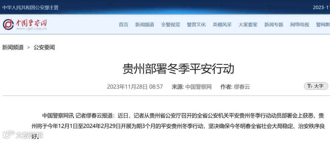 贵州将于今年12月1日至2024年2月29日开展为期3个月的平安贵州冬季行动,其中要求,要全面整治安全隐患,深入开展道路交通等各类安全隐患排查整治,严查严处严重道路交通违法行为,完善应急处置预案和交通事故救援救治联动机制。