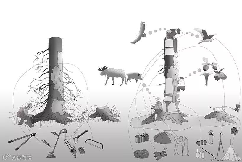 用树干做成一座小型瞭望塔是一种什么感觉?这个项目可以让你眼前一亮。