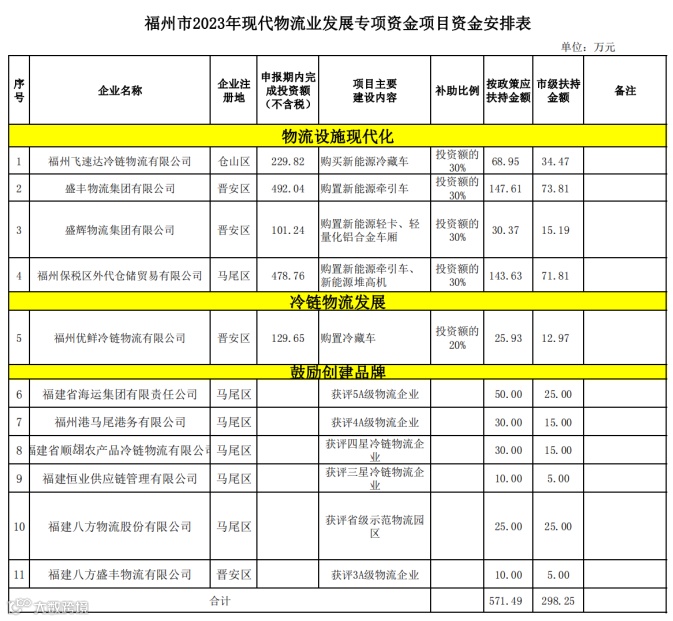 附件:福州市2023年现代物流业发展专项资金拟扶持项目名单