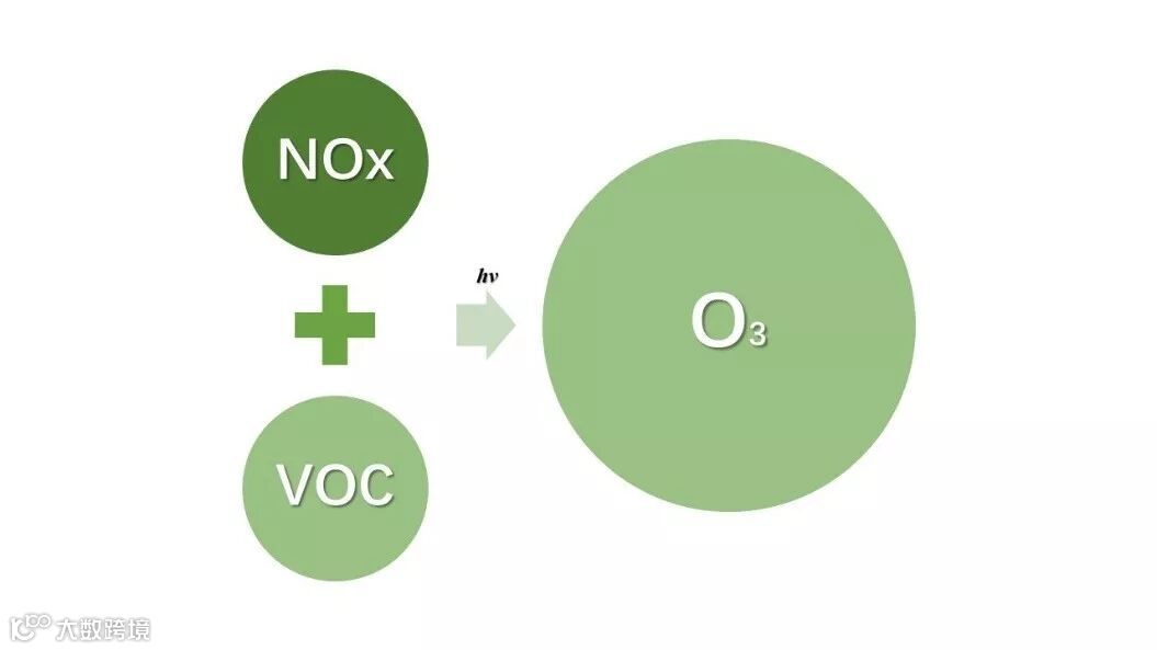 若是没有VOCs的协助,NO向NO2转化时,需要消耗O3;但若是有了VOCs的协助,NO向NO2转化的过程O3有了自由基这个竞争对手,大大减少O3的消耗量。