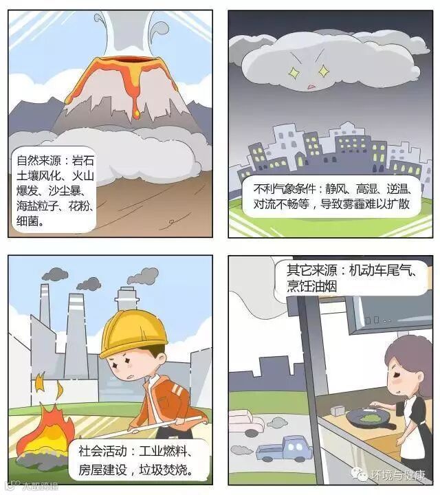 雾霾:是雾和霾的统称。雾和霾两种不同的天气现象,通常混合在一起出现,尽管在定义上有明确的区别界定,但在实际观测和研究中却并不容易区分,所以经常统称为“雾霾天气”。雾的组成比较简单,主要由大量悬浮在近地面空气中的微小水滴或冰晶雾滴组成,而霾的组成成分则非常复杂,有害物质通常大部分富集在细颗粒物(PM2.5)上,主要成分包括:硫酸盐、硝酸盐、铵盐、重金属、地壳物质、含碳颗粒等。