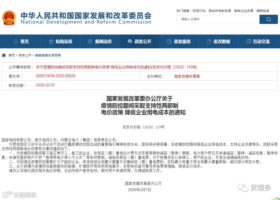 详情链接:国家发展改革委办公厅关于疫情防控期间采取支持性两部制电价政策 降低企业用电成本的通知